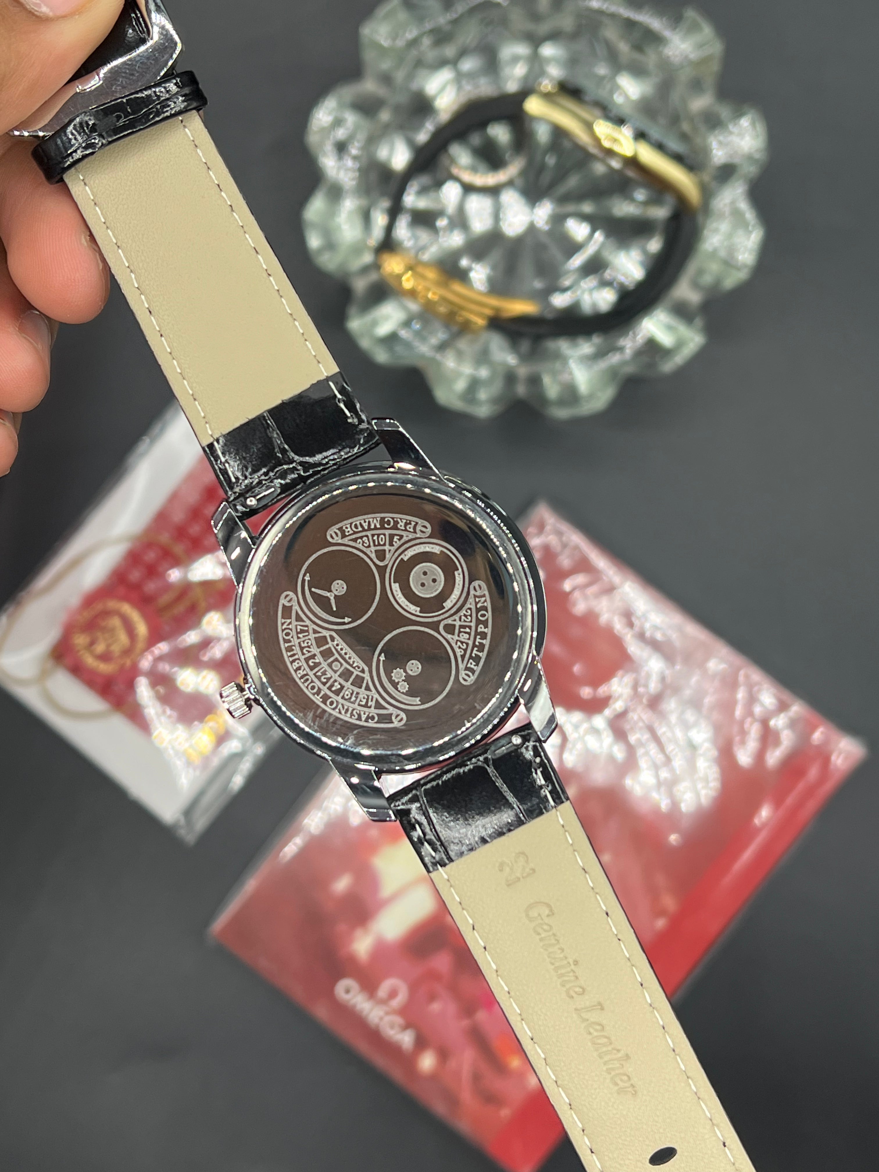 Premium brown and black genuine leather straps for a sophisticated dual-tone appeal.