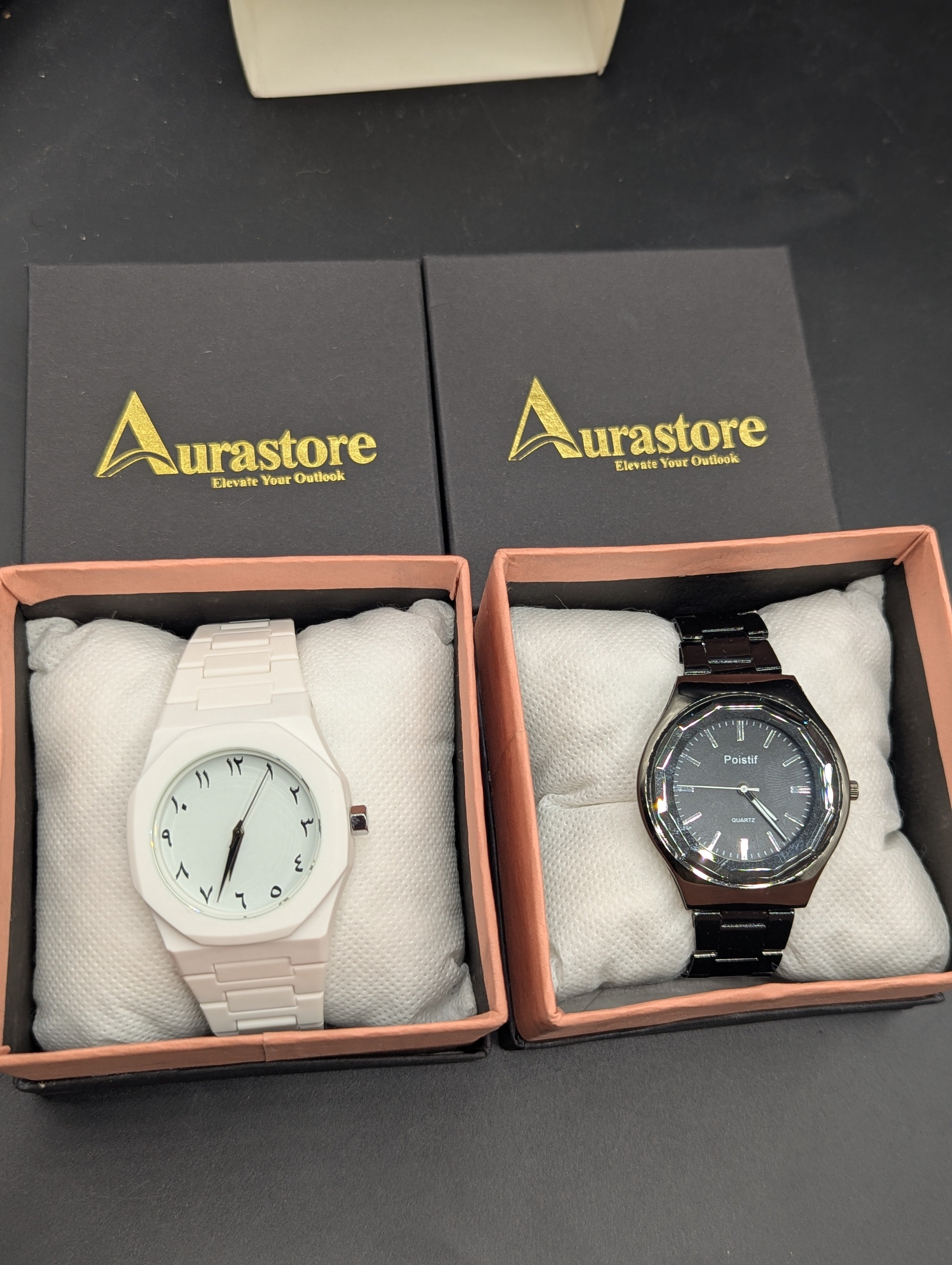 White Aura + Black Steel Watch ( 2 Watches)